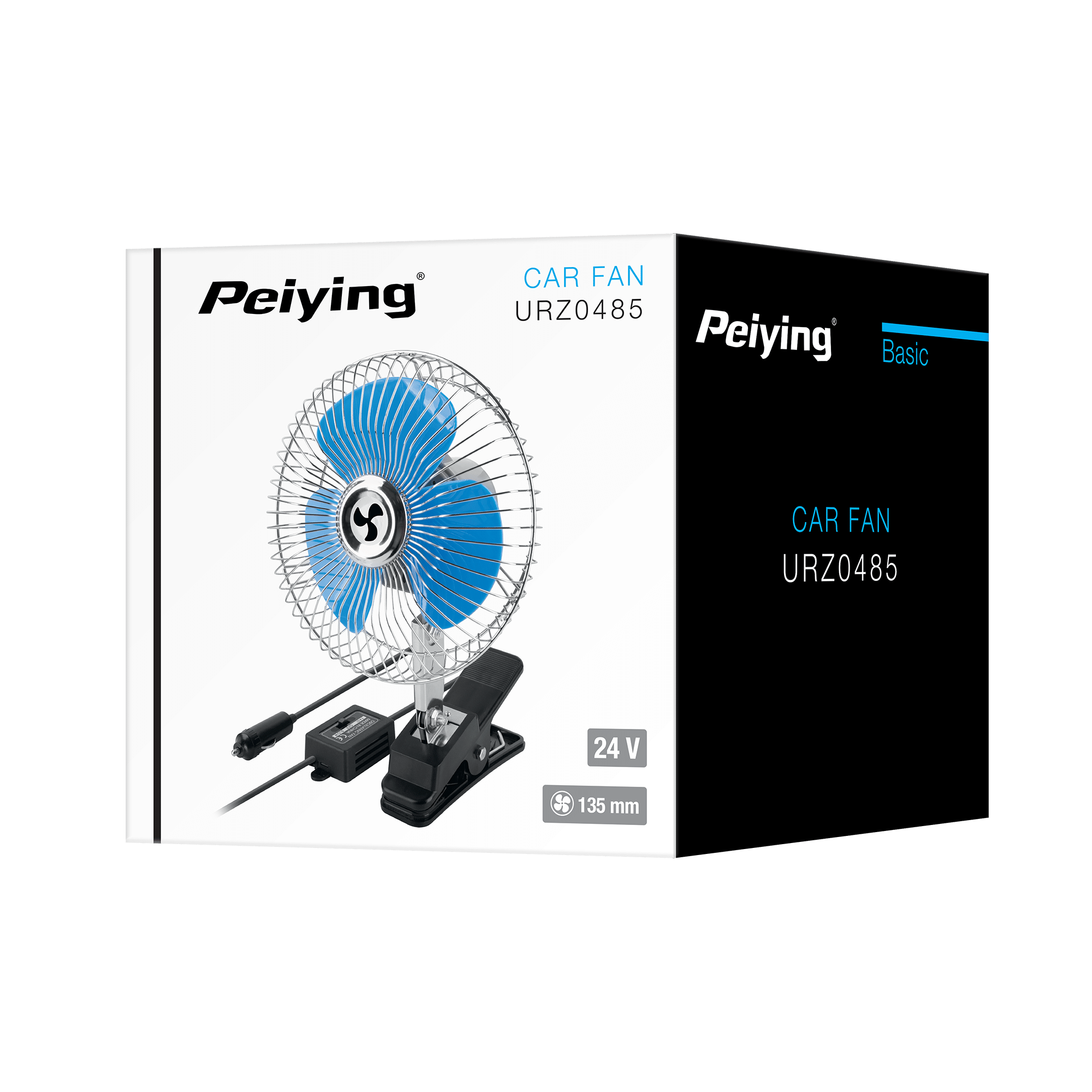 Zasilany jest z gniazdka zapalniczki samochodowej, a kabel zasilający pozwala na podłączenie wentylatora do prądu w wybranym miejscu samochodu. Śmigło osłonięte jest metalową siatką zabezpieczającą.