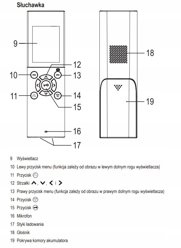 - Wewnętrzne urządzenie zdalnego sterowania (Słuchawka)
