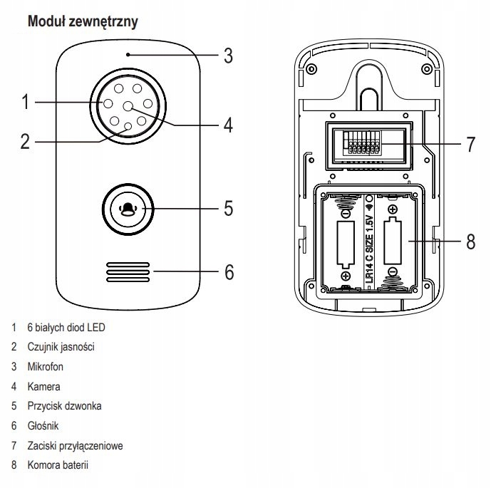 - Bezprzewodowy wideodomofon (Moduł zewnętrzny)