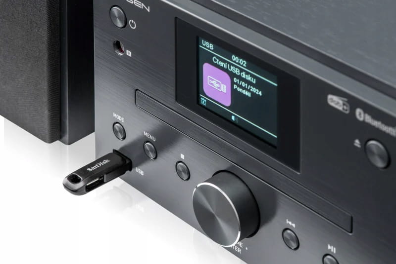 Dzięki cyfrowemu tunerowi DAB+ możesz cieszyć się krystalicznie czystym dźwiękiem. Za jakość dźwięku odpowiadają dwa głośniki stereo po bokach urządzenia o łącznej mocy 30 W. Aby poprawić wrażenia dźwiękowe, mikrosystem oferuje predefiniowane ustawienia equalizera. Do prywatnego słuchania muzyki mikrosystem jest wyposażony w wyjście słuchawkowe, a także w złącze jack 3,5 mm do podłączenia zewnętrznych urządzeń.