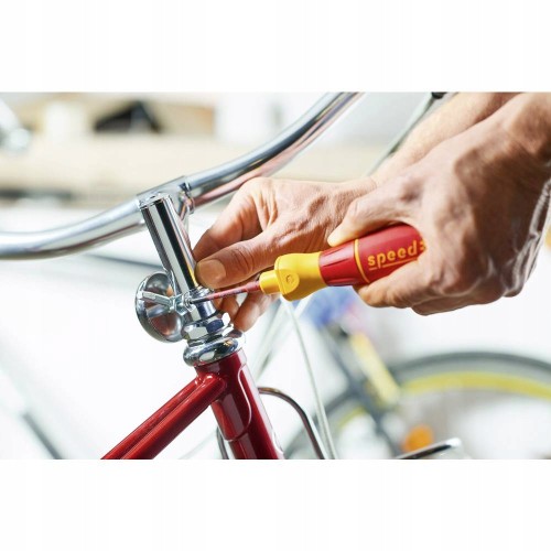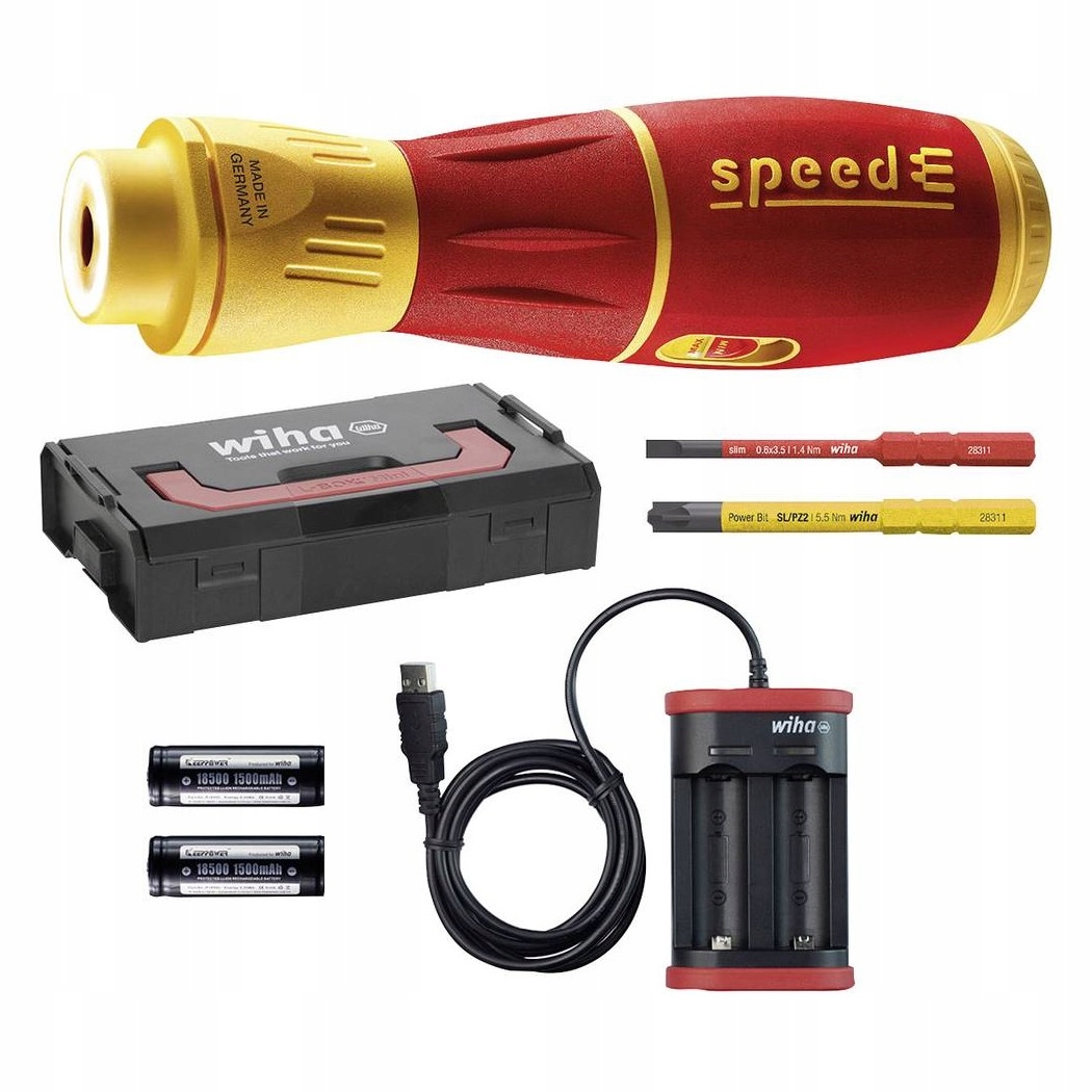 Profesjonaliści wykonują połączenia śrubowe wiele razy dziennie i setki razy w tygodniu. Trudno dziwić się zatem, że skarżą się na bóle w nadgarstkach. Elektryczny napęd wkrętaka speedE® II chroni stawy i ścięgna, zwłaszcza podczas ciągłej pracy. Ponadto przyczynia się on do 3-krotnego zmniejszenia nakładu czasowego niezbędnego do wykonania połączenia. Dodatkową zaletą wkrętaka speedE II jest zintegrowana funkcja ochrony materiału. W przypadku delikatnych połączeń śrubowych, na przykład w plastikowych osłonach gniazdek wtykowych, nie należy stosować zbyt dużej siły, ponieważ może to prowadzić do uszkodzenia materiału. Wkrętak speedE II wyłącza się automatycznie przy osiągnięciu wartości 0,4 Nm, dając użytkownikowi pełną kontrolę i pozwalając na ręczne, ostateczne dokręcenie. Jeżeli dokręcanie wymaga większej siły, wkrętak speedE® drugiej generacji daje możliwość zwiększenia siły elektrycznej do 1,0 Nm za pomocą suwaka. Także kolory bitów slimBit pomagają w ustawieniu odpowiedniego poziomu siły do danego zastosowania. Czerwone bity slimBit o mniejszym profilu wykorzystywane są w czerwonej pozycji suwaka, a żółte bity Power slimBit o większym profilu, umożliwiają pracę w żółtej pozycji suwaka, zapewniającej większą siłę. Jeżeli wymagana jest jeszcze większa siła, wkrętak speedE® II można ustawić ręcznie nawet na 12 Nm bez ryzyka jego uszkodzenia. Podczas wkręcania wbudowana lampka LED zapewnia stałe oświetlenie i optymalną widoczność śruby. Lampkę LED o dużej mocy można więc wykorzystywać jako latarkę w słabo oświetlonych miejscach, załączając ją naciśnięciem przełącznika pierścieniowego. Większy przełącznik pierścieniowy, a także płynny ruch obrotowy, gwarantują wyjątkowy komfort użytkowania. Łatwość pracy w połączeniu z ergonomicznym kształtem rączki SoftFinish® sprawiają, że wkrętak elektryczny speedE® II jest polecany przez niemieckich lekarzy i fizjoterapeutów ze stowarzyszenia AGR. Zestaw obejmuje jeden czerwony i jeden żółty bit slimBit, ładowarkę USB oraz dwa standardowe akumulatory typu 18500, które umożliwiają długotrwałą pracę.