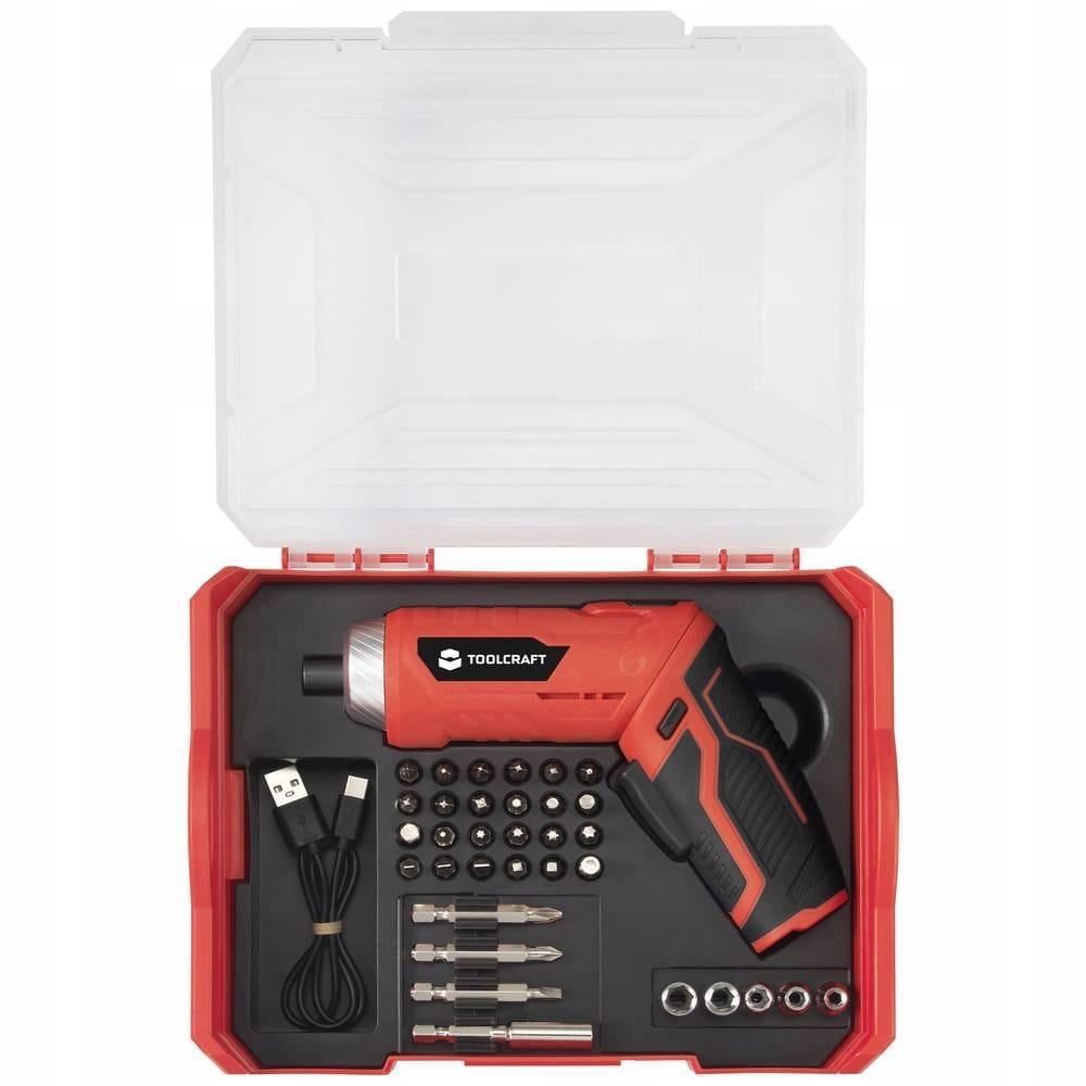 Cały zestaw jest starannie zapakowany w poręczny i trwały organizer, który zapewnia wygodę przechowywania oraz transportu. Dzięki walizce wszystkie elementy, w tym wkrętarka oraz komplet bitów, są bezpiecznie zorganizowane i zawsze pod ręką.