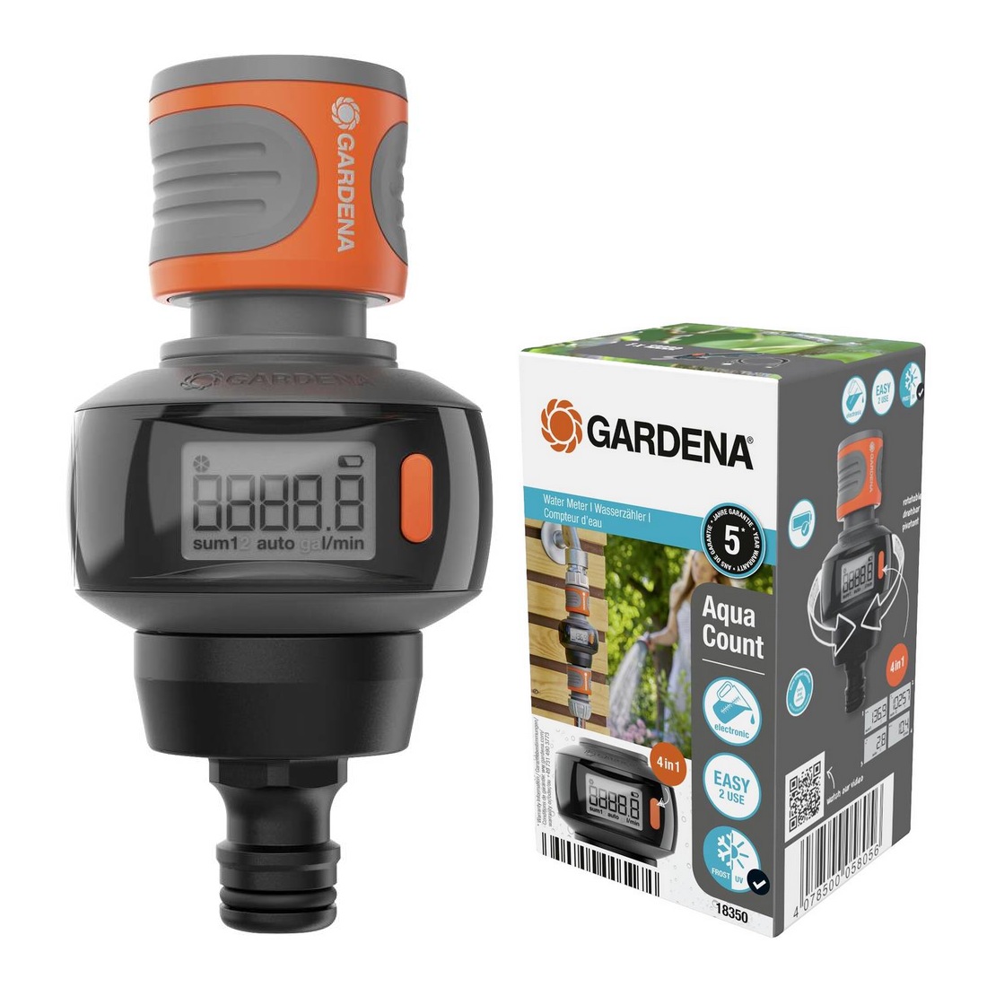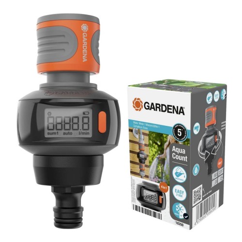 Wodomierz AquaCount firmy GARDENA nie tylko pomaga mierzyć zużycie wody w dowolnym momencie podczas nawadniania, ale także oszczędza wodę w dłuższej perspektywie. Wodomierz ogrodowy jest łatwy w instalacji i obsłudze. Zasilany na baterie jest gotowy do natychmiastowego użycia i jest łatwy do czyszczenia. Podłączenie odbywa się bezpośrednio na kranie lub na końcu węża i jest możliwe zarówno w orientacji poziomej, jak i pionowej. Wyświetlacz można obracać i jest czytelny w dowolnej pozycji. Sprytna obsługa za pomocą jednego przycisku zapewnia również szczegółowy wgląd w dzienne zużycie wody w sezonie, dokładne zużycie w procesie nawadniania oraz natężenie przepływu na minutę w litrach. Ponadto wodomierz zachwyca wysokiej jakości materiałami, które zapewniają wytrzymałość, mrozoodporność i stabilność UV. Zasilanie bateryjne.