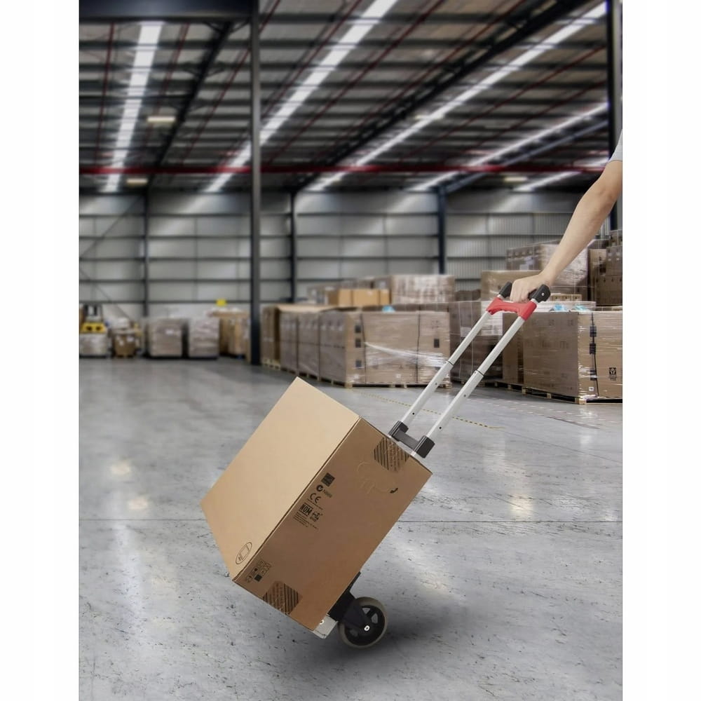 Możemy przewozić nim ciężkie przedmioty bez konieczności dźwigania. Wózek jest komfortowy w użytkowaniu i prosty w obsłudze. Można go złożyć i nie zajmuje dużo miejsca.