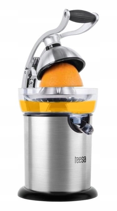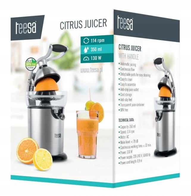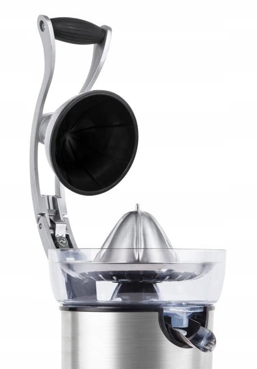 Kwaśny sok z cytryny, słodki z pomarańczy, albo lekko goryczkowy z grejpfruta. Jeśli Twoja rodzina uwielbia soki ze świeżo wyciśniętych cytrusów mamy urządzenie, które w łatwy sposób pomoże Ci je przygotować. Automatyczna wyciskarka, ze specjalnym uchwytem wyciśnie sok z Twoich ulubionych owoców do ostatniej kropli. Wystarczy, że przekroisz owoc na pół i położysz na stożku, a następnie dociśniesz uchwyt. Kręcący się z prędkością 114 obrotów/minutę stożek wydobędzie pełen witamin sok, który możesz gromadzić w zbiorniku urządzenia o pojemności 350 ml lub wlewać bezpośrednio do szklanki.