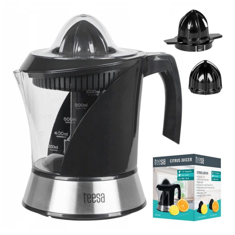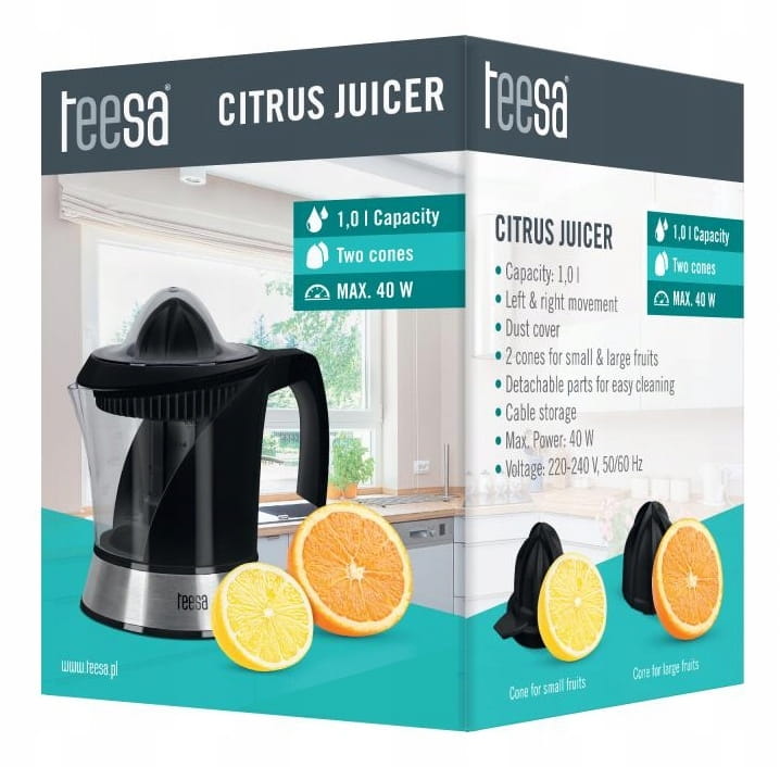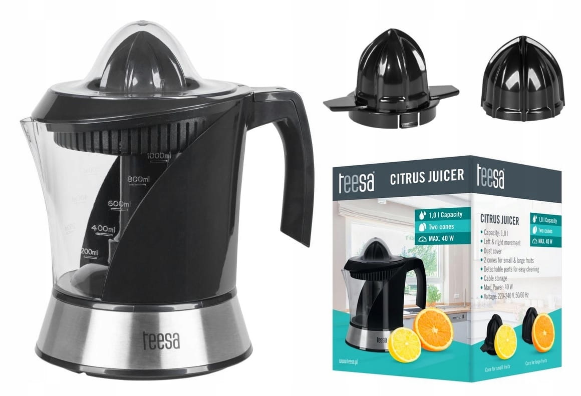 Wyciskarka do cytrusów, to produkt, który powinien zagościć w domu każdego, kto ceni zdrowe odżywianie. Mocny silnik i dwa kierunki obrotu nasadki w wersji do dużych lub małych owoców zapewnią dokładne wyciśnięcie soku z każdego cytrusa. Czarna obudowa, wykończona elementami szczotkowanej stali nierdzewnej oraz przezroczysta strefa na sok sprawią, że wyciskarka będzie nie tylko praktycznym urządzeniem kuchennym, ale również eleganckim elementem wystroju. Dzięki pokrywie chroniącej przed kurzem oraz wyjmowanym częściom, które ułatwiają mycie, można w bardzo łatwy sposób zachować czystość urządzenia.