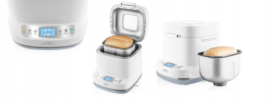 Marzysz o własnym chlebie, dokładnie takim, jak lubisz? Z domowym wypiekaczem ETA Crustica to prostsze niż kiedykolwiek. Wystarczy dodać składniki, wybrać jeden z 12 programów, a urządzenie zajmie się resztą całkowicie automatycznie. Wypiekacz został wyposażony w unikalną, bezobsługową przekładnię, która zapewnia cichą pracę i długą żywotność.