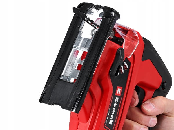 Wykorzystanie dostarczonej osłony przeciwodpryskowej pozwala na uzyskanie czystych i gładkich cięć. Możliwość włączenia ruchu wahadłowego zapewnia szybki postęp cięcia. Uchwyt brzeszczotu w kształcie T umożliwia szybkie i beznarzędziowe wymiany ostrzy.