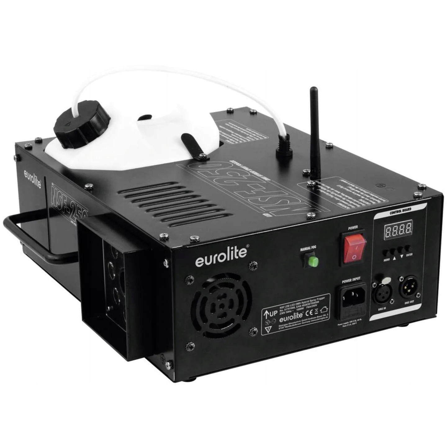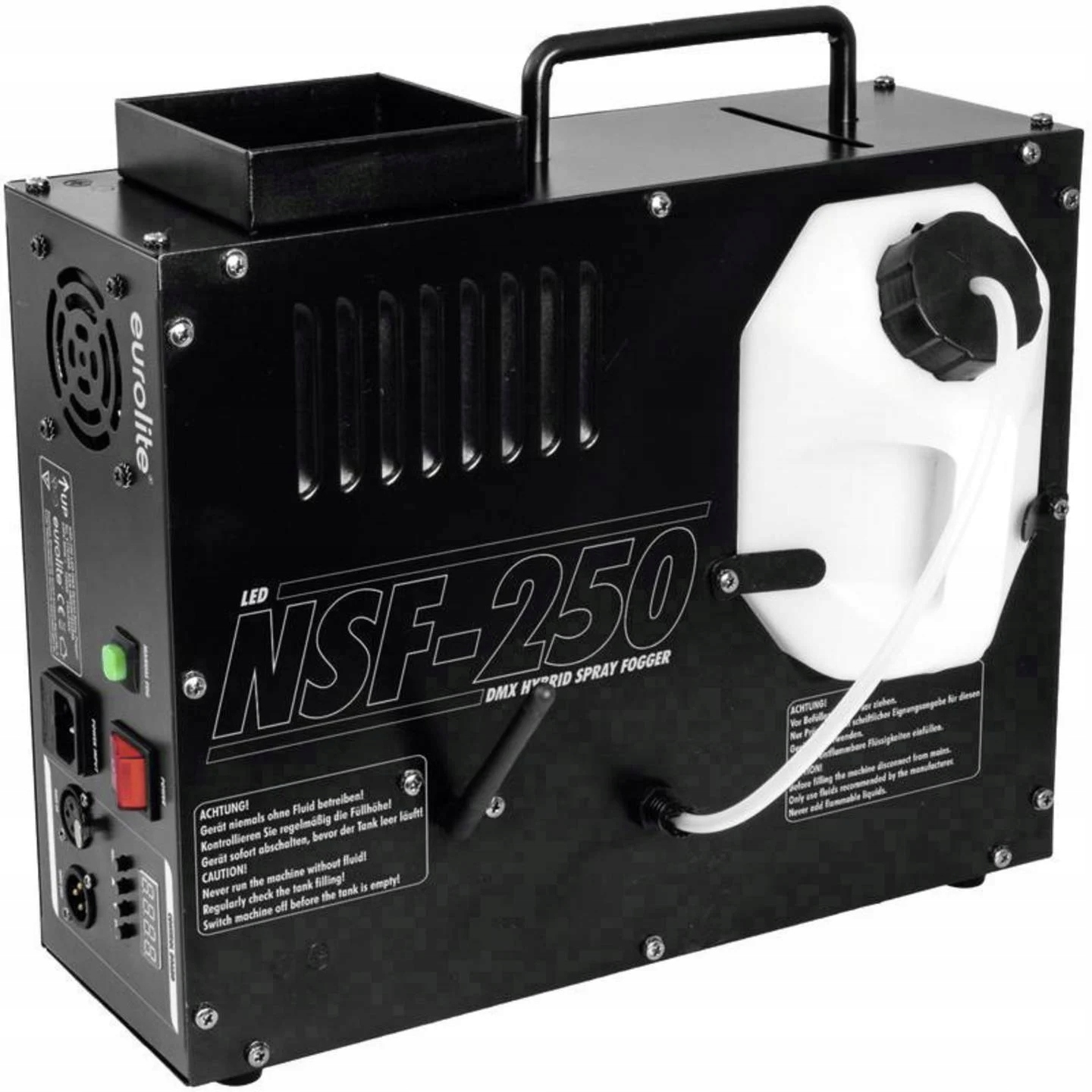 Wytwornica ma wystarczającą moc, aby pogrążyć w tajemniczej mgle średnie pomieszczenia i tym samym ulepszyć specjalne efekty świetlne.