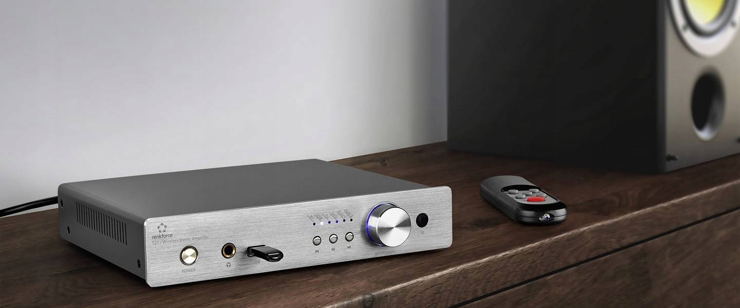 Gniazdo USB pozwala na odtwarzanie plików MP3 i WAV. Dzięki temu ten niewielki wzmacniacz doskonale nadaje się do licznych zastosowań, np. jako centrala kina domowego.