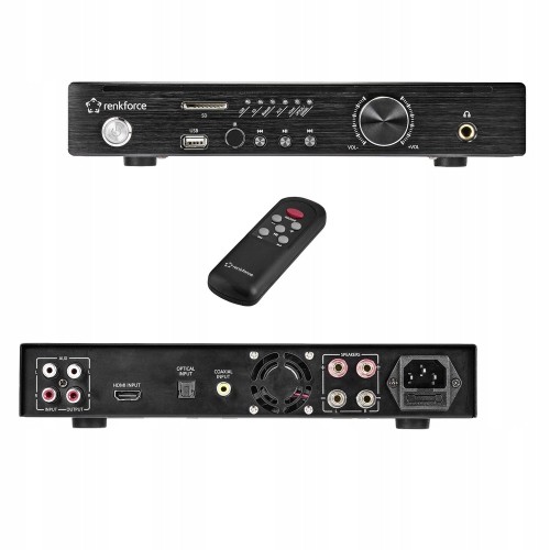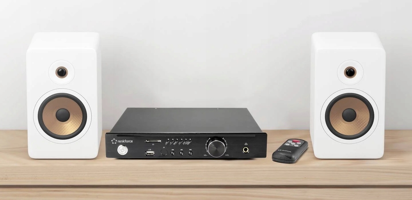 Wzmacniacz HiFi służy do wzmacniania sygnałów audio w domowym sprzęcie audio i podłącza się go między źródłem sygnału, który ma być wzmocniony, a głośnikami. Ponadto można odtwarzać sygnały przesyłane przez interfejs Bluetooth oraz pliki audio z nośników USB lub kart pamięci SD.