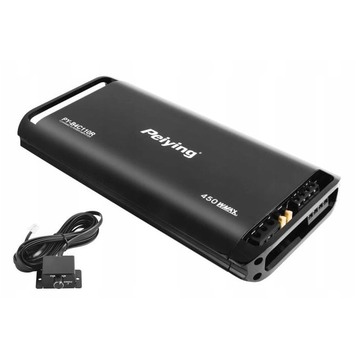 Potężny wzmacniacz samochodowy Peiying wzorniczo i technicznie jest doskonały. Idealnie nadaje się do zasilania skrzyń basowych i subwooferów samochodowych. Posiada zabezpieczenia przeciążeniowe i termiczne, ma solidne terminale połączeniowe, dużą moc wyjściową i spory zakres regulacji basu. Przy stosunkowo małych gabarytach osiągają dużą moc. Wykonany ze specjalnego stopu aluminium obudowa skutecznie rozprasza emitowane przez urządzenie ciepło. Wzmacniacz samochodowy Peiying pozwala na dopasowanie brzmienia do akustyki wnętrza każdego samochodu. Nowoczesny design, czyste i dynamiczne brzmienie oraz potężne wzmocnienie. Końcowe stopnie mocy wykonane w oparciu o szybkie tranzystory mocy - MOS FET. Zasilanie oparte na przetwornicy PWM, która odpowiedni podwyższa i przekształca napięcie zasilania potrzebne do uzyskania odpowiednio dużej mocy.