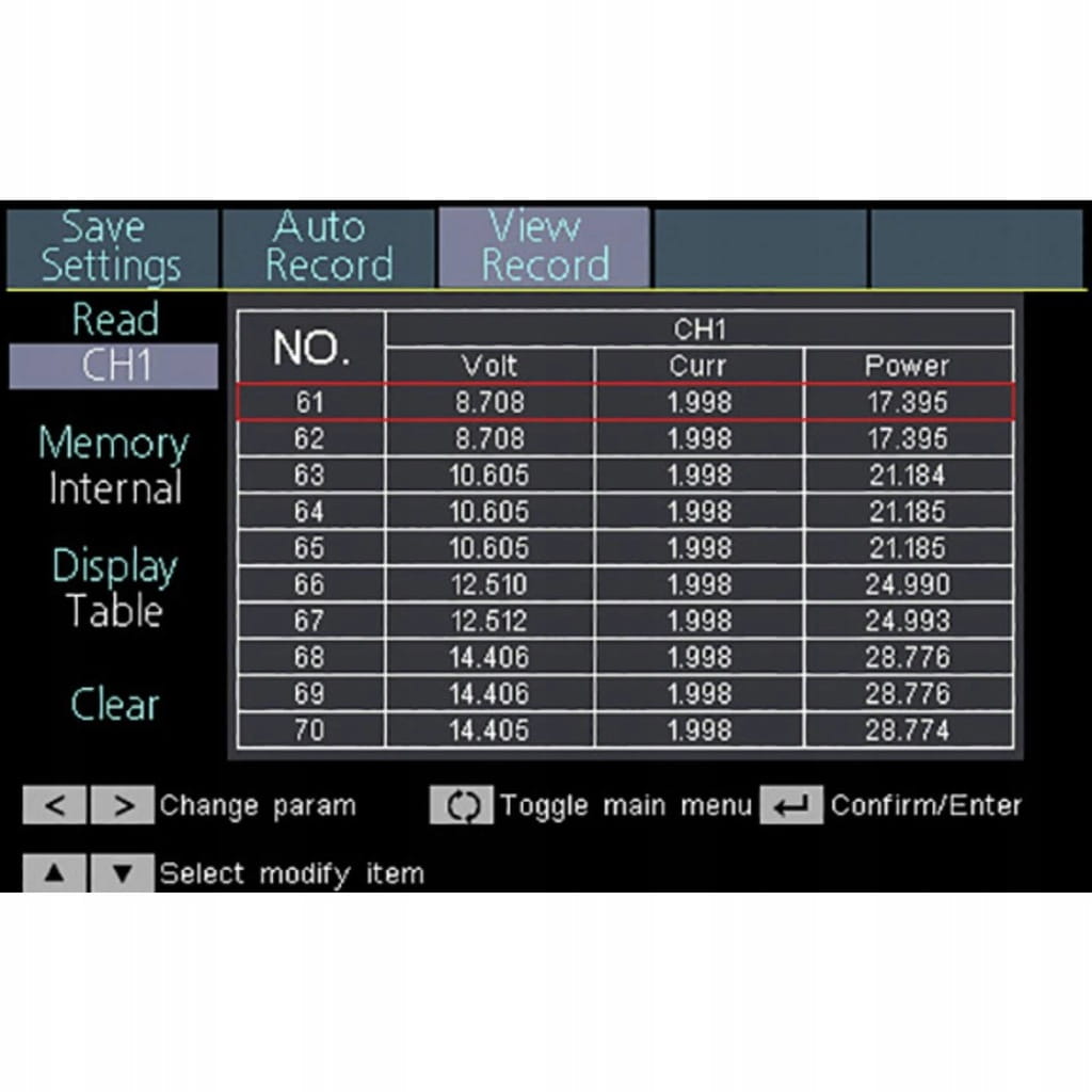 Napięcie i prąd wyjściowy można rejestrować i zapisywać w tabeli. Ponadto można zaprogramować do 100 timerów grupowych.