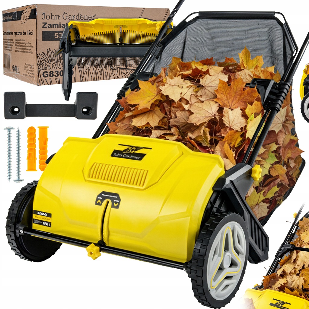 Zbieracz do liści trawy 53 cm ręczny kosz 100L zamiatarka reg wysokości