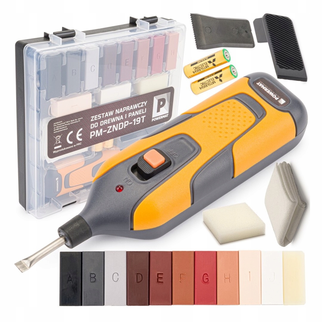 Kompaktowy zestaw do naprawy okien, drzwi i drewnianych podłóg dzięki któremu szybko i trwale usuniesz płytkie oraz głębsze zadrapania, dziury, naprawisz uszkodzone narożniki i krawędzie, wgniecenia – zarówno na powierzchniach dekorów jak i drewnianych. Doskonale sprawdza się przy naprawach miejscowych. W skład zestawu wchodzą wszystkie narzędzia, niezbędne do wykonania napraw.