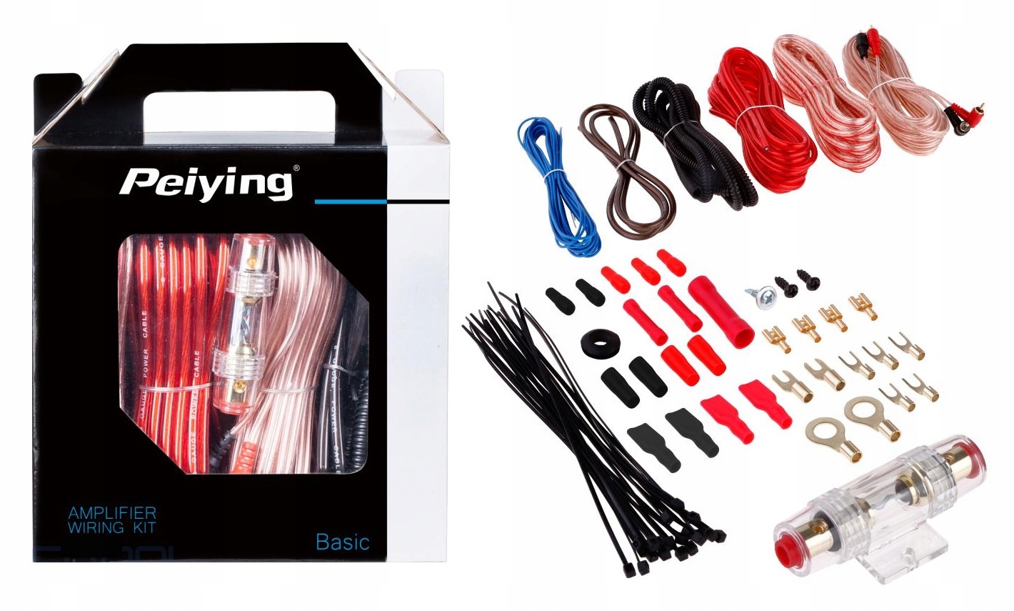 Idealne do subwoofera, wzmacniacza i radia samochodowego. Bezpiecznik 60A + oprawka hermetyczna i liczne akcesoria montażowe. Solidny i duży zestaw przewodów.