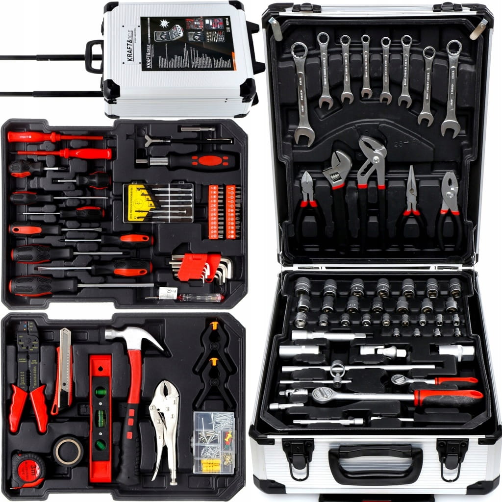 klucze płaskie, nasadowe, grzechotkę, młotek, zestaw szczypiec, poziomice, zaciski, taśmę mierniczą, taśmę izolacyjną, nóż, komplet gwoździ i wkrętów, a także wkrętaki i końcówki do bitów.