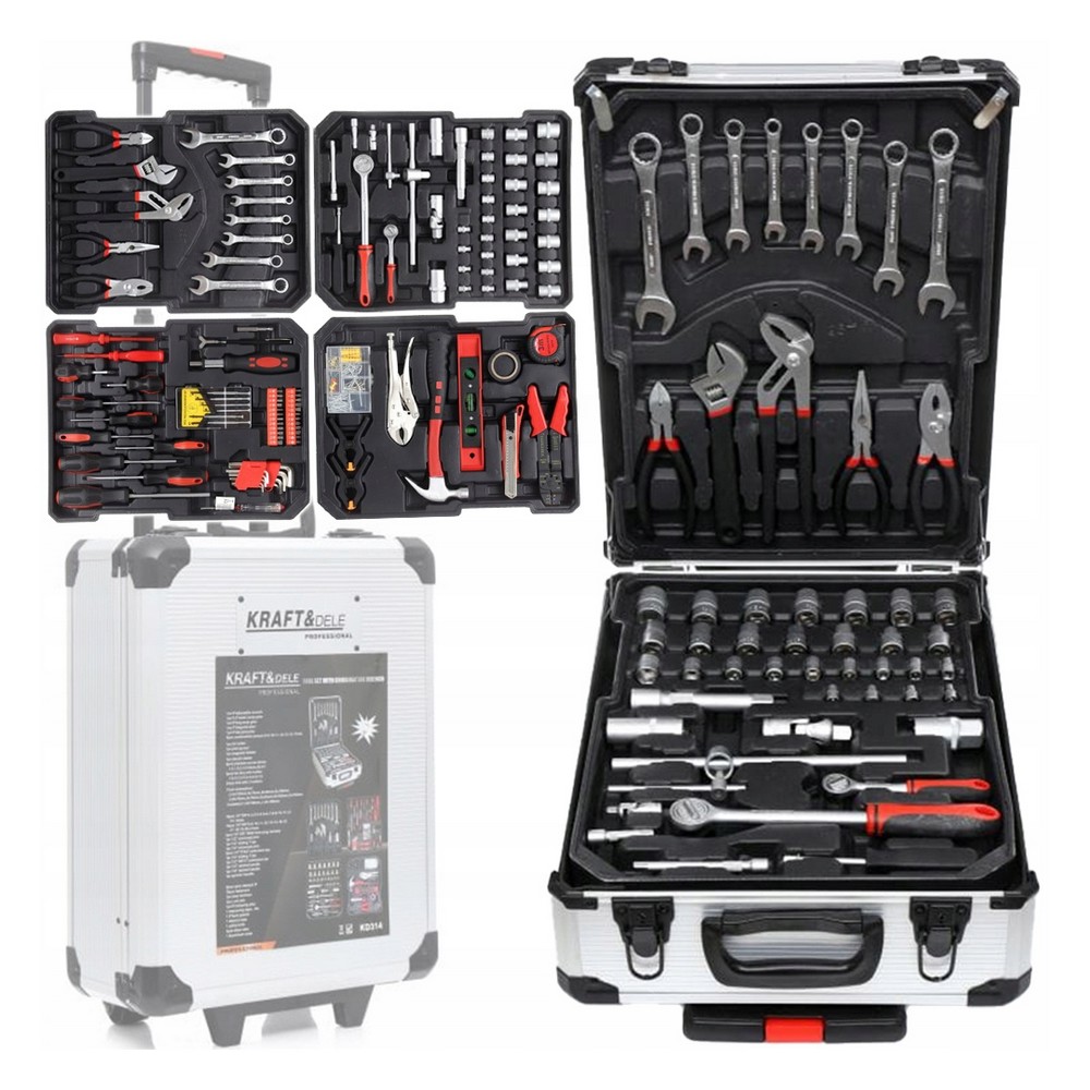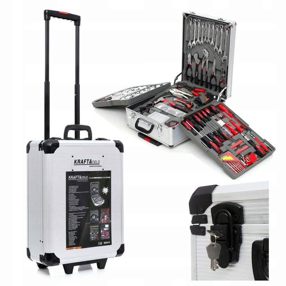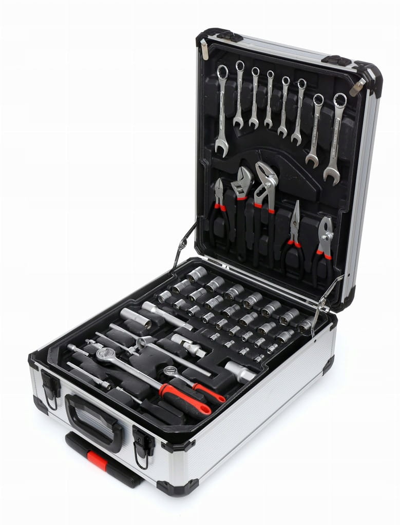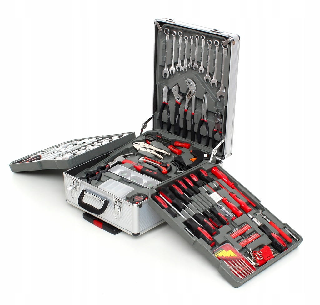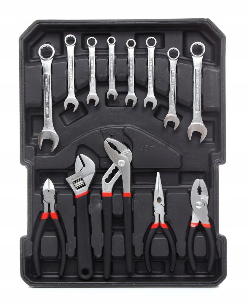 Znakomicie dobrany zestaw narzędzi warsztatowych 188 elementów w mocnej walizce na kółkach