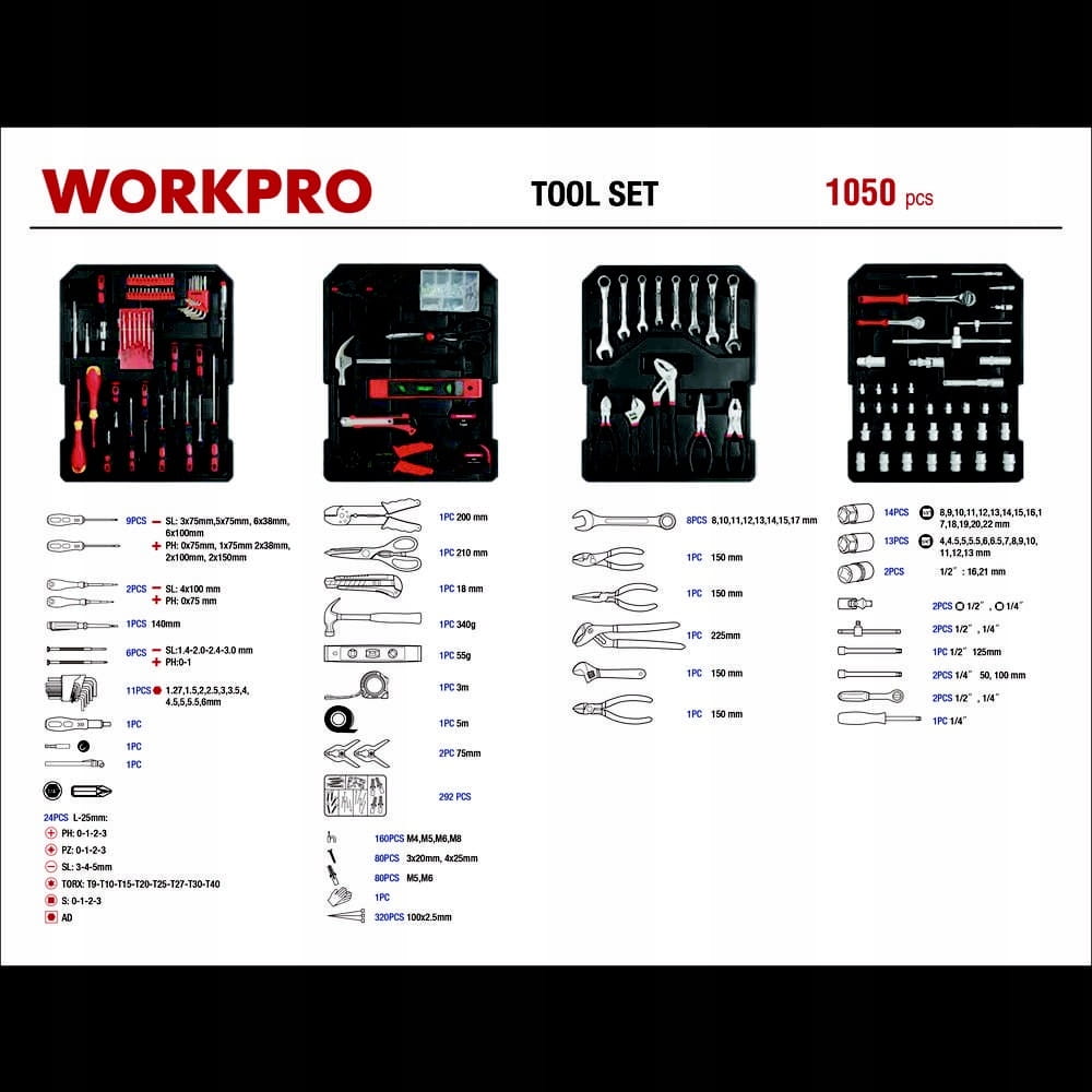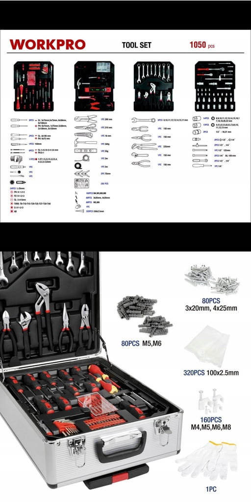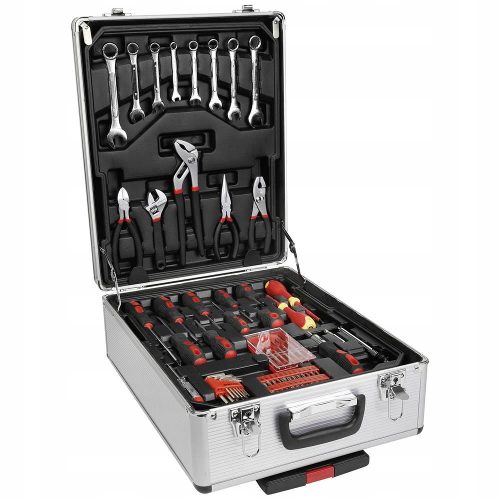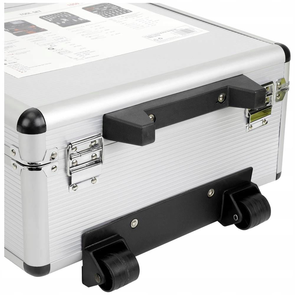 Obszerny zestaw narzędzi XXL umieszczonych w praktycznej walizce z aluminium. Narzędzia nadają się do prawie wszystkich prac naprawczych i warsztatowych. Przenośna konstrukcja walizki na kółkach zaopatrzonej w chowany uchwyt ułatwia transport. Dobra organizacja, łatwe wyjmowanie. Wszystkie narzędzia można łatwo wyjąć i umieścić z powrotem w odpowiednich organizerach.