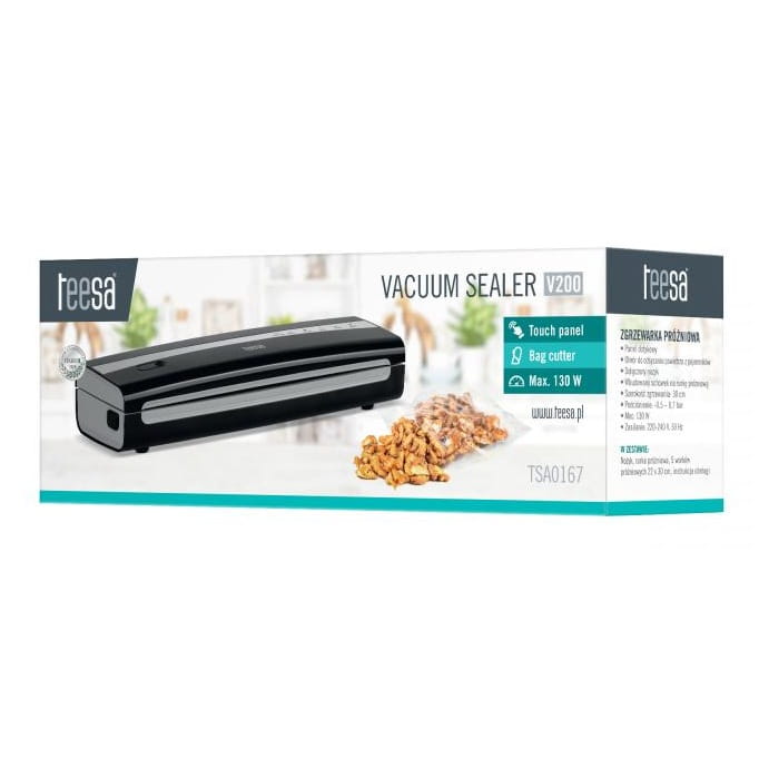 Nie lubisz marnować jedzenia, a może żyjesz zgodnie z zasadą zero waste? Zgrzewarka do pakowania próżniowego Teesa V200 to urządzenie, które powinno znaleźć się w Twojej kuchni. Dzięki niemu żywność będzie dłużej świeża i smaczna. Zatem zachowaj na dłużej swoje ulubione ciasta, owoce, warzywa, mięsa, wędliny, sery, ryby i inne gotowe dania. Pakowanie próżniowe chroni produkty przed bakteriami i pleśnią, dzięki czemu wydłuża ich przydatność do spożycia.